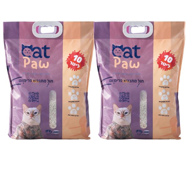 זוג Cat Paw חול לחתולים מתגבש בתוספת פחם פעיל כולל משלוח עד הבית! – 10 ליטר * 2 יח'